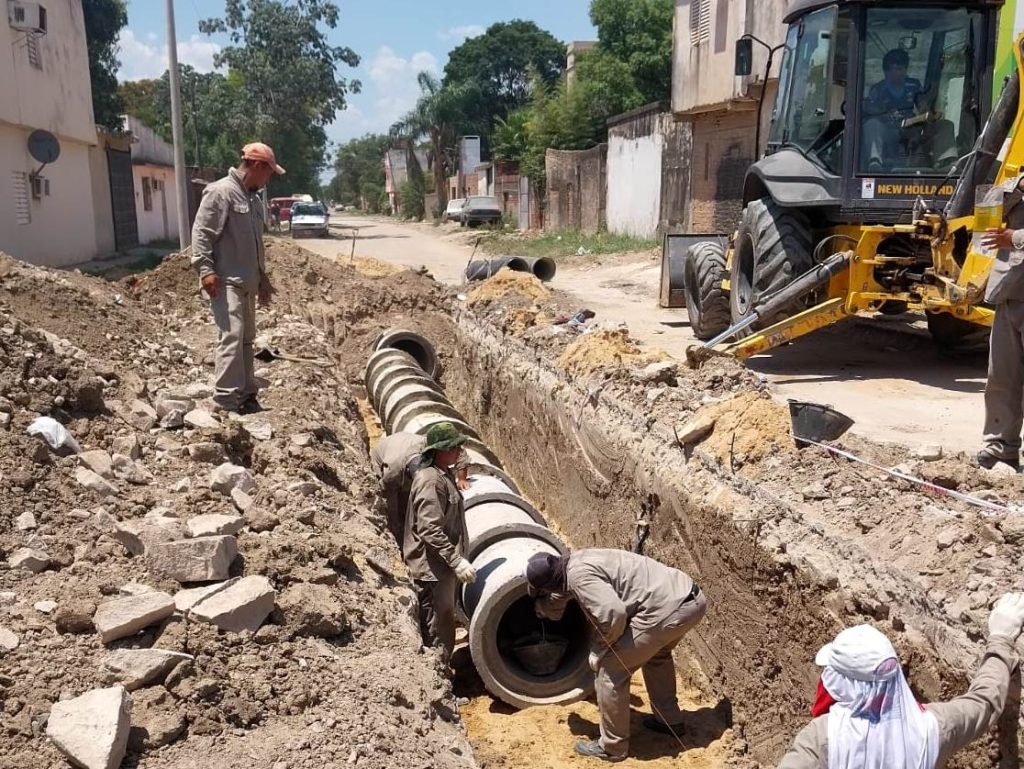 Estos trabajos se complementan con la construcción de sumideros, cámaras de registro y vinculaciones de enlace, como la que se concreta en la actualidad en el cruce con calle Las Heras.