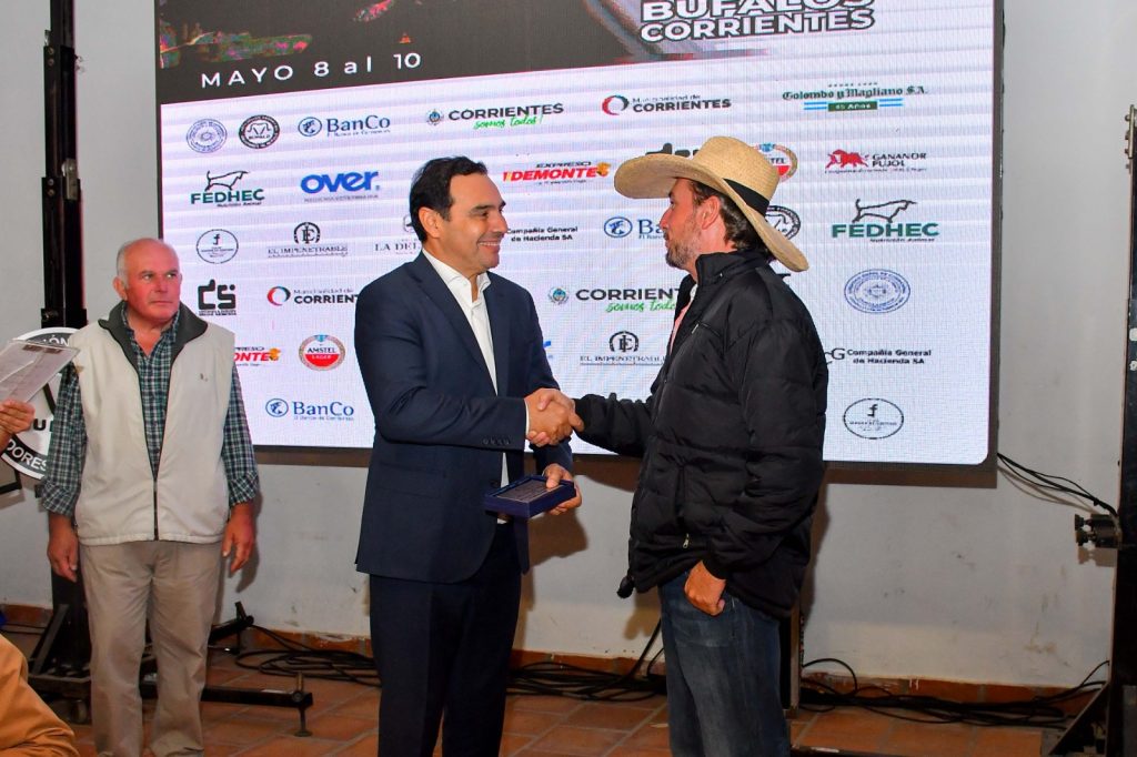 Valdés, acompañado del ministro de Producción de la Provincia, Claudio Anselmo; el secretario de la Asociación Argentina de Criadores de Búfalos (AACB), Marcelo Breard, organizadores de dicho evento; y el presidente de la SRC, Francisco Velar, entre otros, participaron inicialmente del almuerzo “Búfalo Entero” (búfalos del Iberá). En ese contexto, se realizó la entrega de premios, el cual el primero, que fue entregado por el titular del Poder Ejecutivo provincial junto a Breard, fue para la Estancia “Rincón del Guyaibí” de Liliana Agosti, quien obtuvo los reconocimientos Gran Campeona Hembra de la raza Mediterránea, Reservada Gran Campeona Hembra de la raza Mediterránea y Gran Campeón Macho de la raza Murrah.